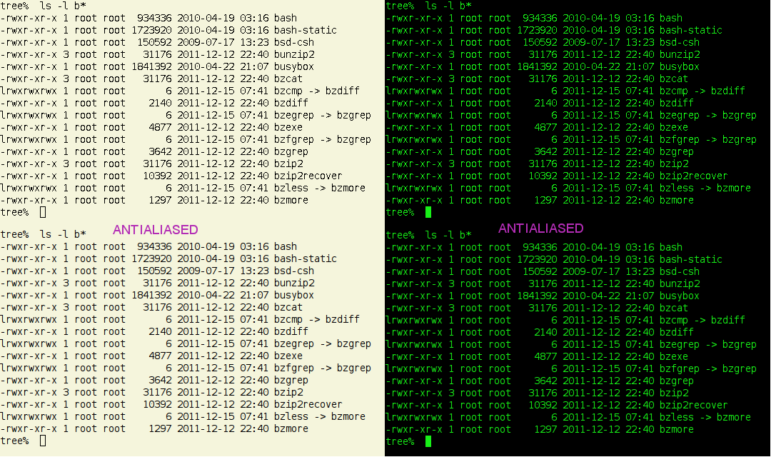 $ XTHINT='hinting=1:autohint=1:hintstyle=hintfull' $ XTREND='antialias=1:rgba=rgb:lcdfilter=lcdlight' $ xterm -fa "dejavu sans mono:size=10:weight=medium:slant=roman:$XTHINT:$XTREND"